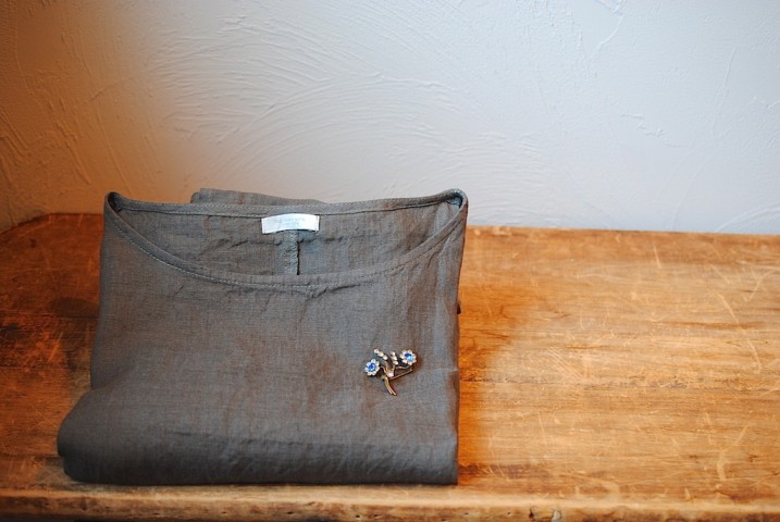 小さなブローチはアクセントにもなって会話のネタにもなりそうです。