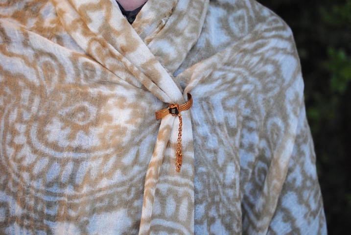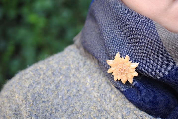 首にくるっと巻いたストールにちょこんとひとつ。