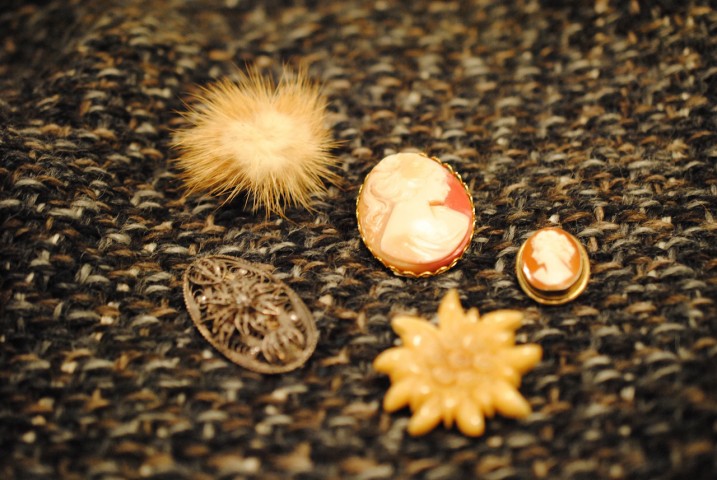存在感のあるカメオのブローチ、インパクトありますね。