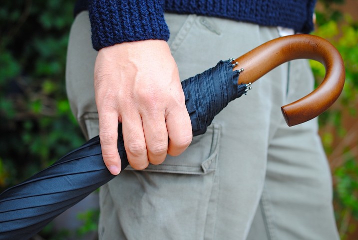 スーツにも邪魔をしない作りが移動に向いた男性的な傘ですね。