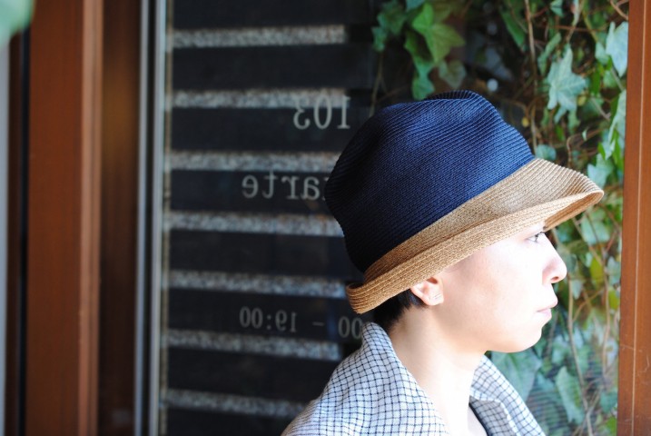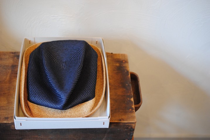 合わせたミックスブラウンとネイビーとの2トーンの新作マチュアもボックスハット。