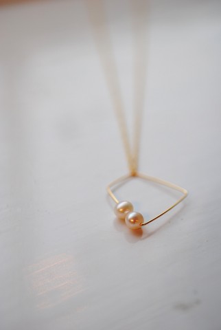 小ぶりなパールが二つ寄り添うネックレスはリングを通したデザインのようですね。