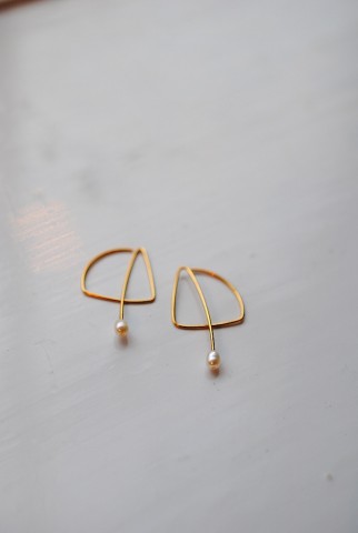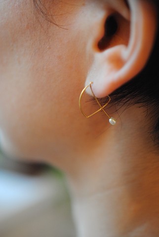 ワイヤーの開いた部分から装着するユニークなデザインのこのピアス。