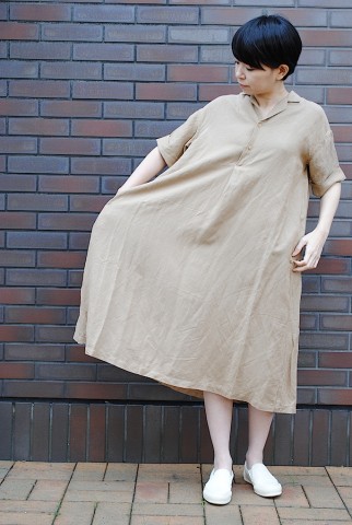 麻 + レーヨン素材のワンピースは