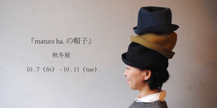 10 / 7(金) 〜 10 / 11(火)「mature ha.の帽子」秋冬展 を開催します。