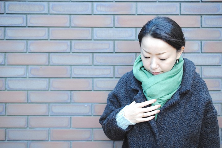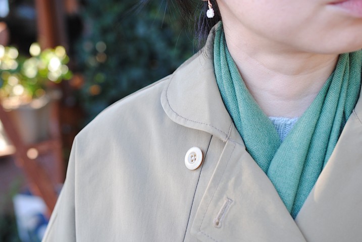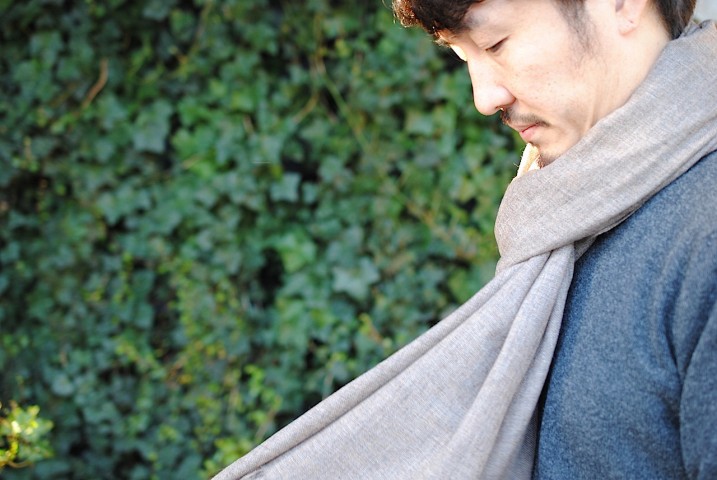大判の良さはカーディガン風に羽織ったり、ブローチを使用してケープのようにアレンジしたりと多種多様。