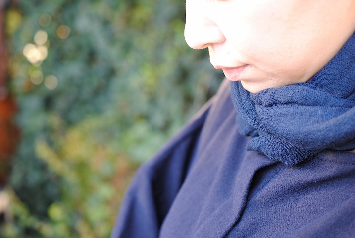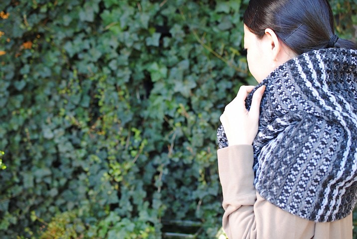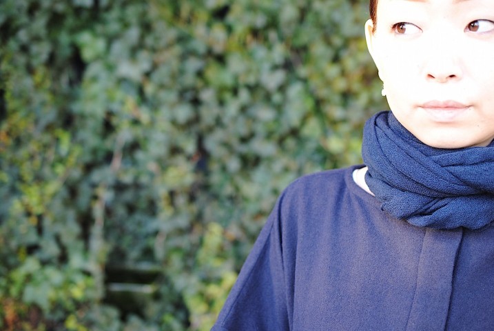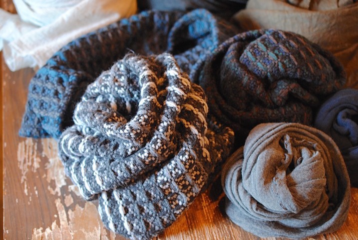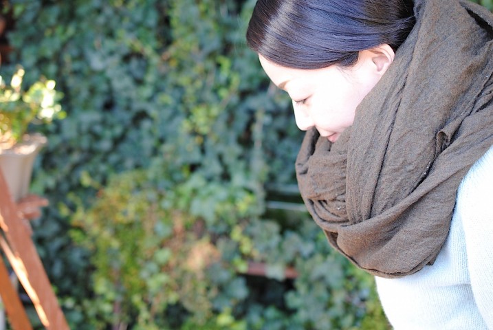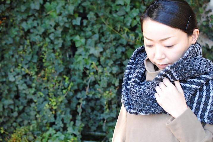 輪っかになっているスヌードは、自然とドレープする雰囲気が簡単に作れるので