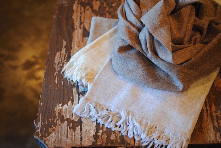 ヒマラヤ山脈の麓にある小さな工場でひとつひとつハンドメイドで作られるスカーフです。