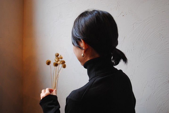 ユニークなピアスはアクセサリーはこれだけ、とシンプルに身につけていただきたい存在感のあるピアスです。