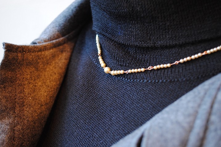 タートルのネック下に一本、、スタンダードでありながらもおすすめしたいスタイルです。