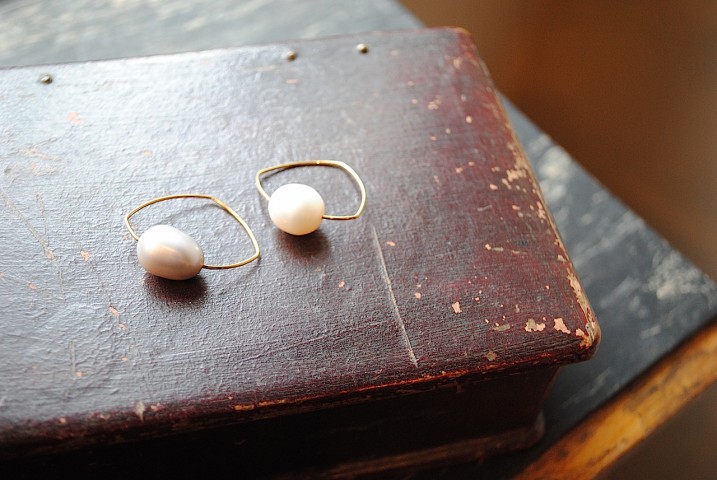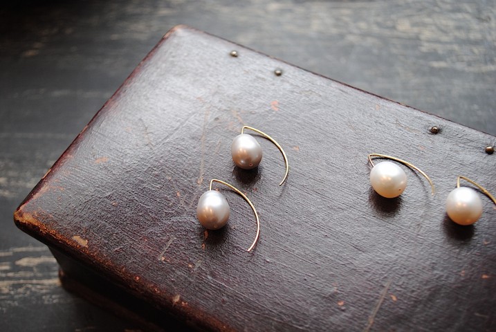 ぽてっとした形とやや大きめのサイズ感が存在感のあるパールのピアス。