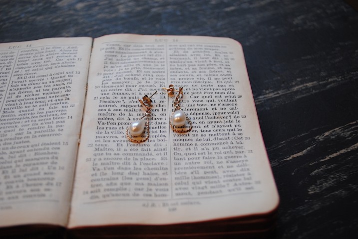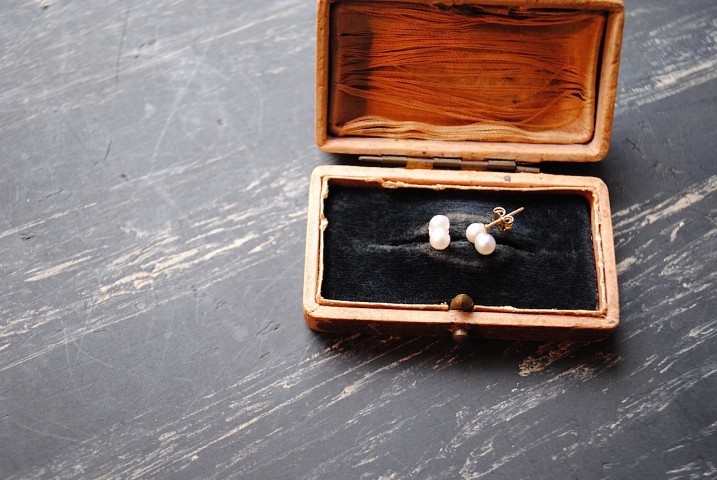 小さなパールが二つ寄り添ったピアスはなんと双子ちゃん。