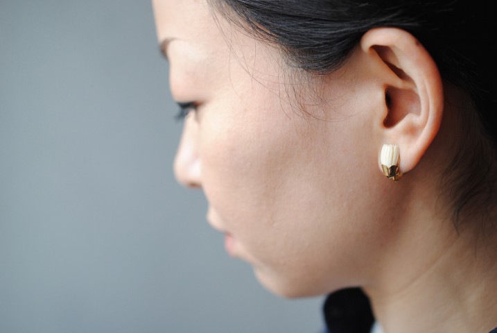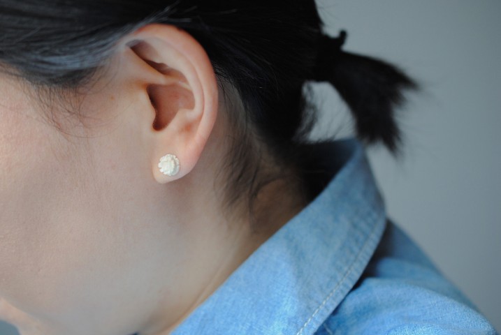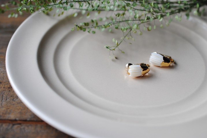 アイボリー(象牙)の柔らかな白が肌馴染みの良いピアスです。