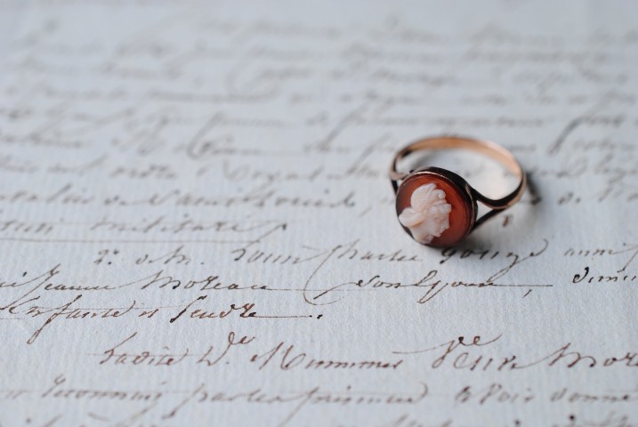 楕円ものが多いカメオの中でもより個性を感じるリングです。