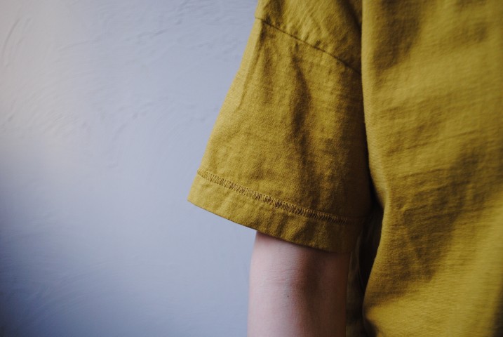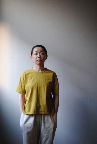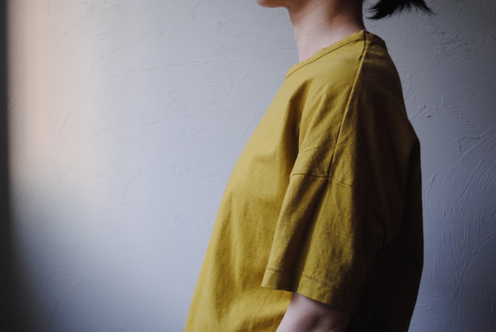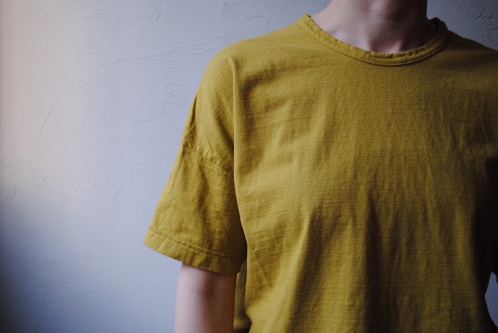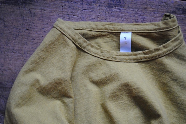 黄色というよりはカラシがかった色が子供っぽく無く着て頂けそうなpritのTシャツ、