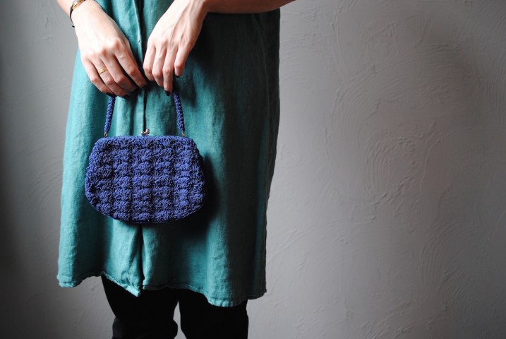 細かなビーズワークが柄を作るように並んだイブニングバッグ。