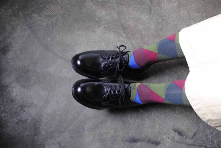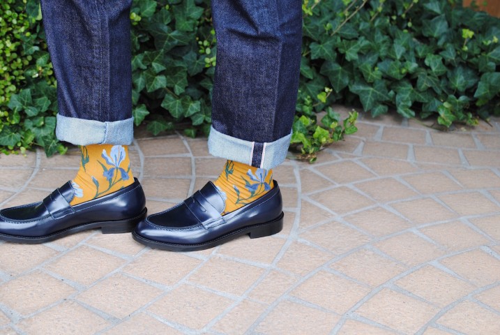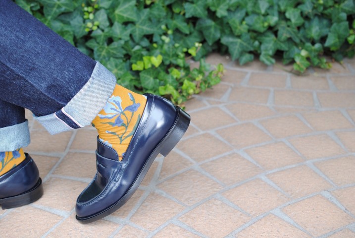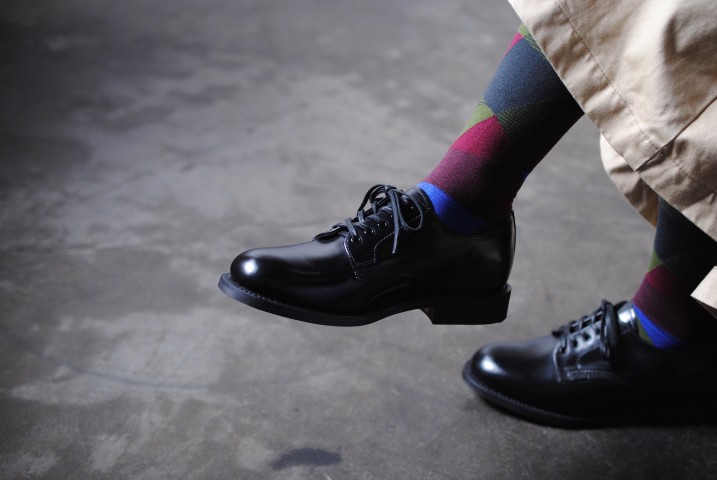 レザーの短靴を自然と合わせます。