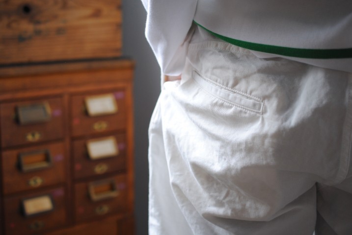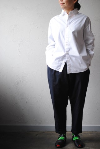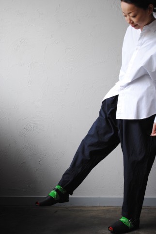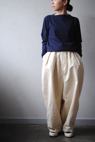 マリンパンツとトラウザーを混ぜたようなシルエット。