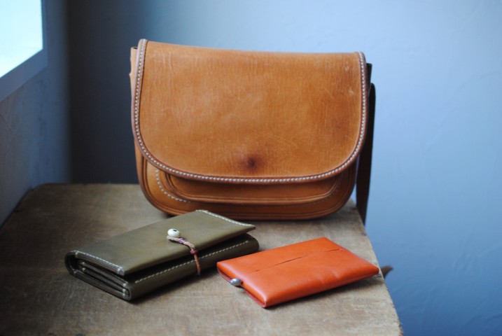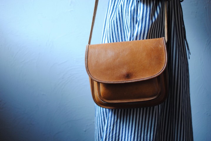 しっかりと張りのある牛革ショルダーバッグもビンテージ。