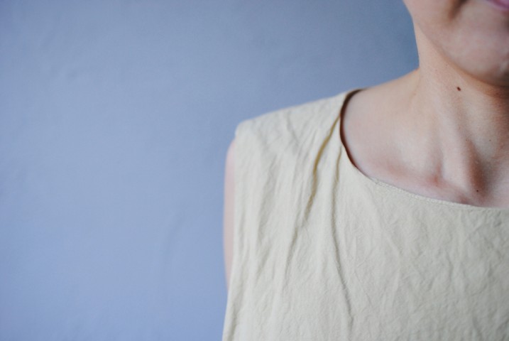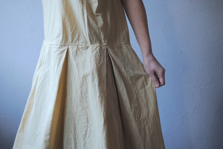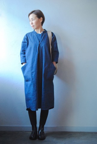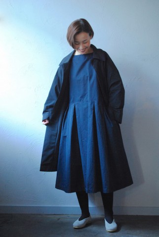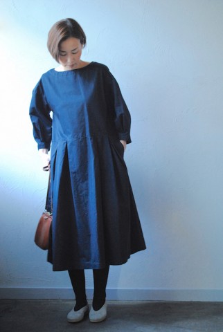 ワンピースは重ね着しやすいノースリーブスタイル。