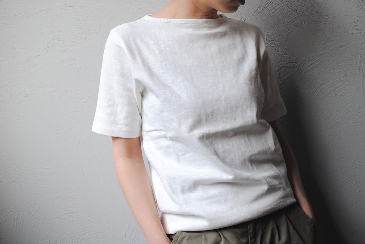 無駄の無いボートネックの綺麗さと身幅のフィット感、