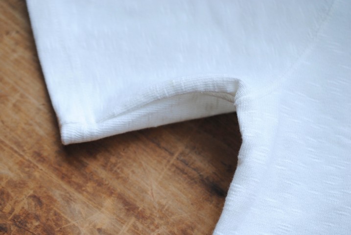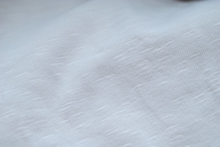 熟練の職人により生み出される一枚は一般のTシャツに用いられるコットン生地と比べて
