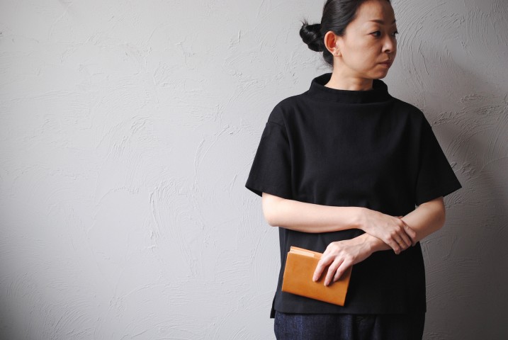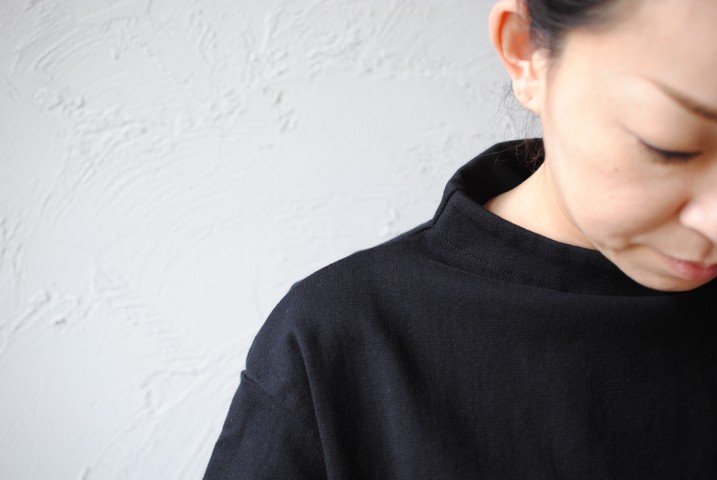 ボトルネックとハリのある素材、短か過ぎ無い袖丈が女性らしく