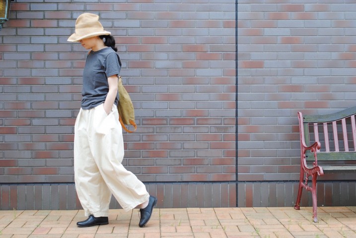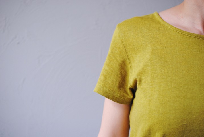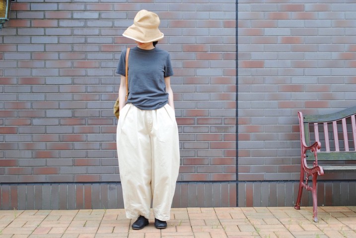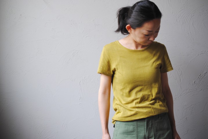 コットンとリネンで出来たこのTシャツはリネン特有のトロンとした肌に沿うドレープが女性らしく