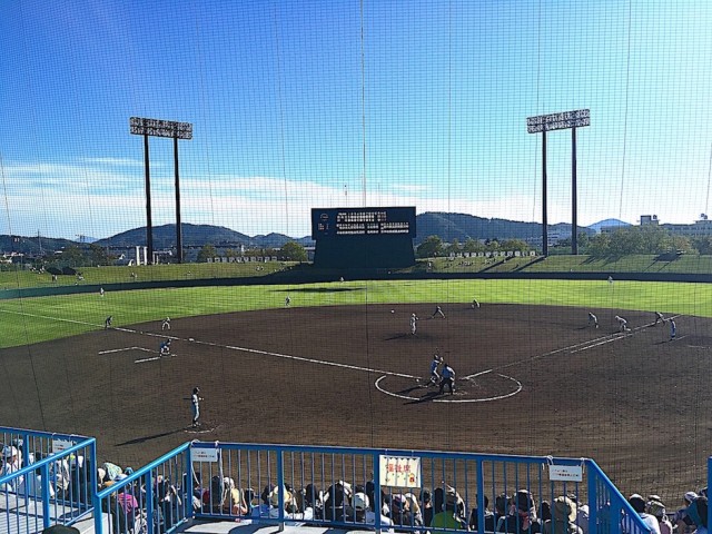 ちょうど国体硬式野球がやっていたので、チエさん連れてバックネット裏観戦を。