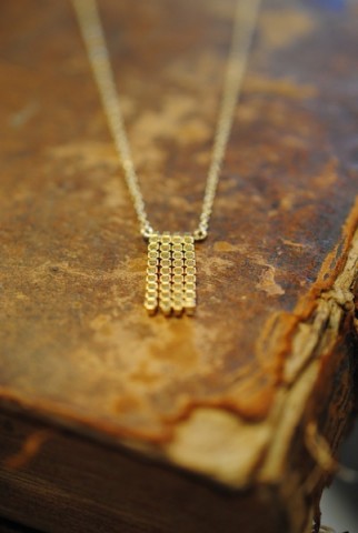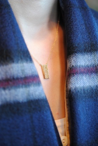 四角と四角が寄り添うデザインのネックレス。