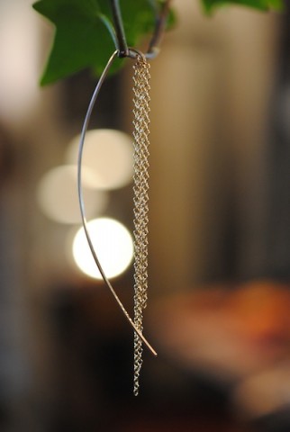 四角と四角が交互に編み合わされたベネチアンチェーン使いのピアス。