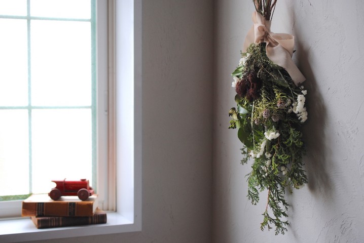 モミや杉、ユーカリをふんだんに使ったスワッグ。
