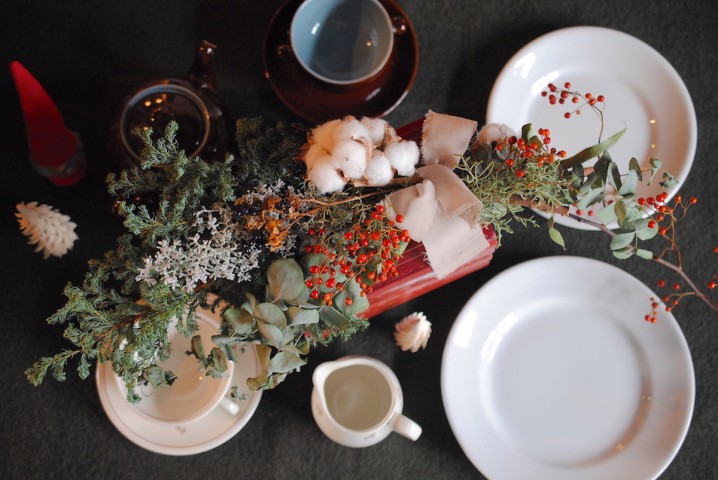 ひとつのキャンドルとバウムツリーを食卓へ。