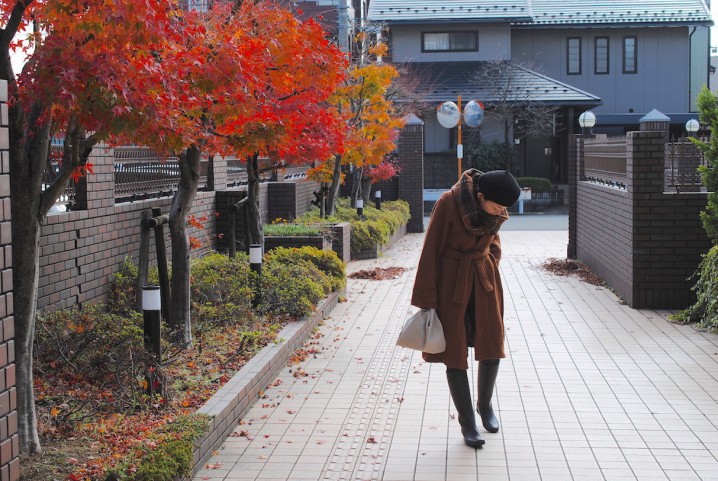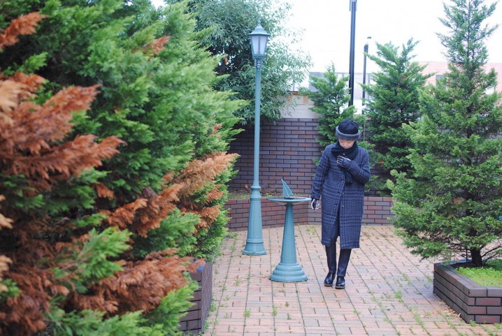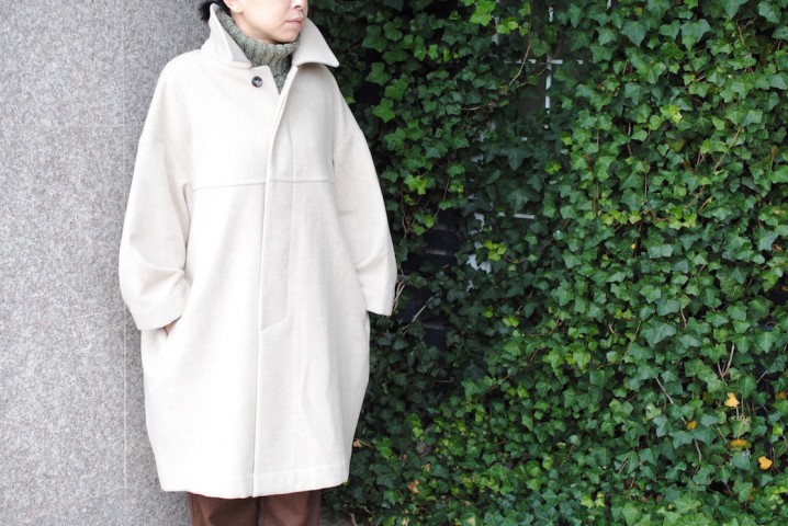 薄くて軽いhave a good day 定番のステンカラーコートを羽織って。