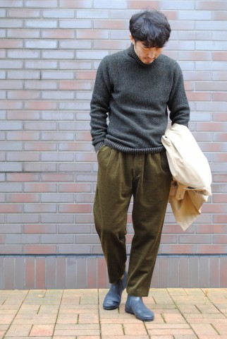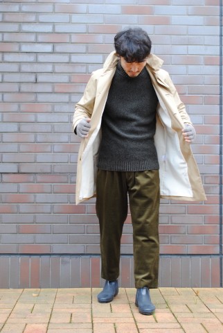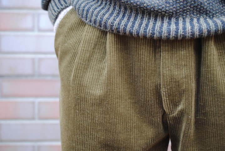 茶に近いカーキ色にコーデュロイならではの光沢感が良い雰囲気です。