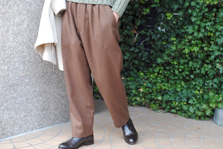 束縛感のないボトム、インナーにレギンスをしたためて下半身にも暖かさを。