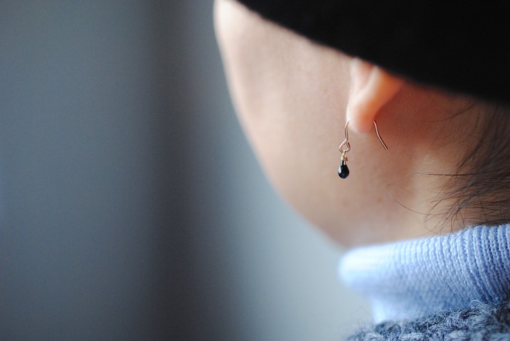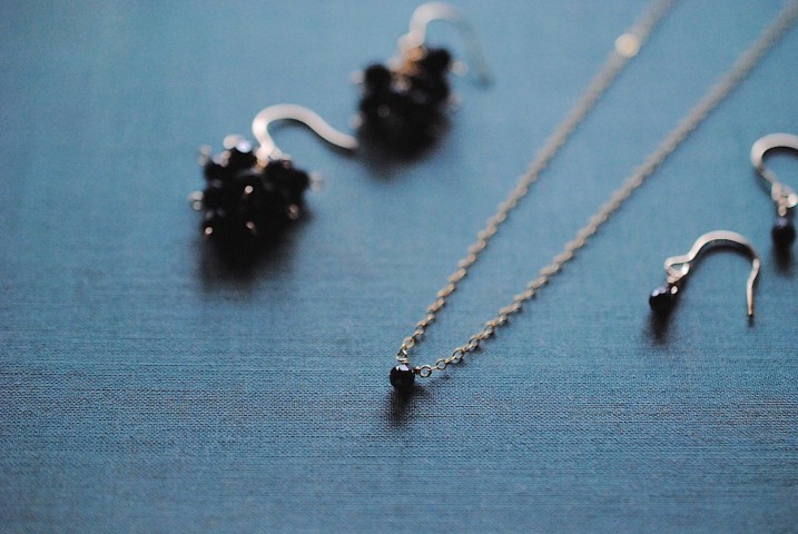まずはブラックスピネル、雫型のピアスから。