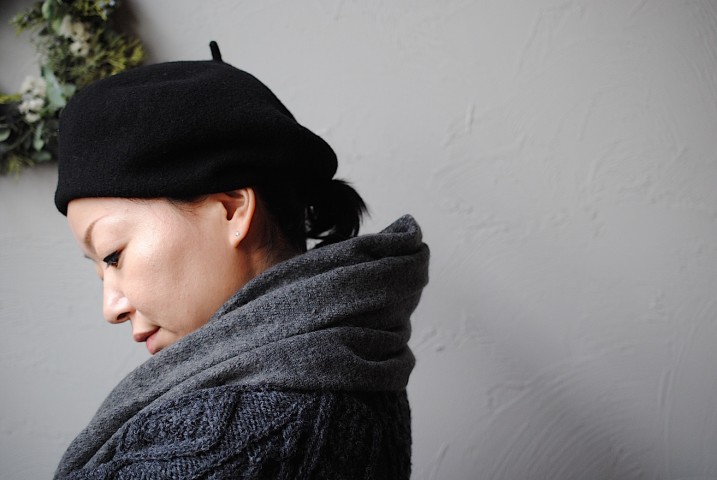 暗くなりがちな装いにもフレッシュな感じが顔まわりを色取ってくれるよう。