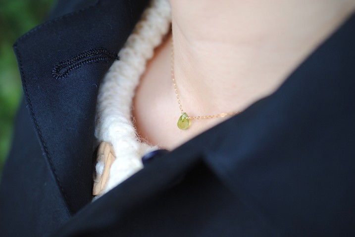 揃いのネックレスも小さな雫型。