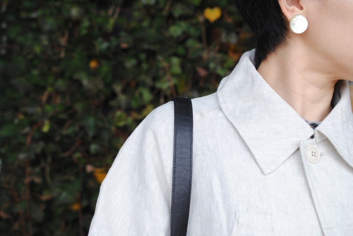 長めのシャツワンピースを重ねて生地のグラデーションを楽しむのもひとつですね。