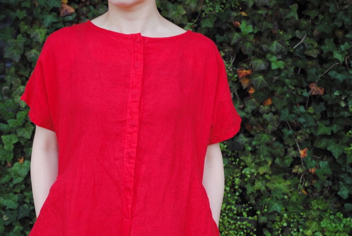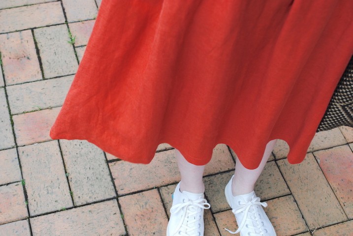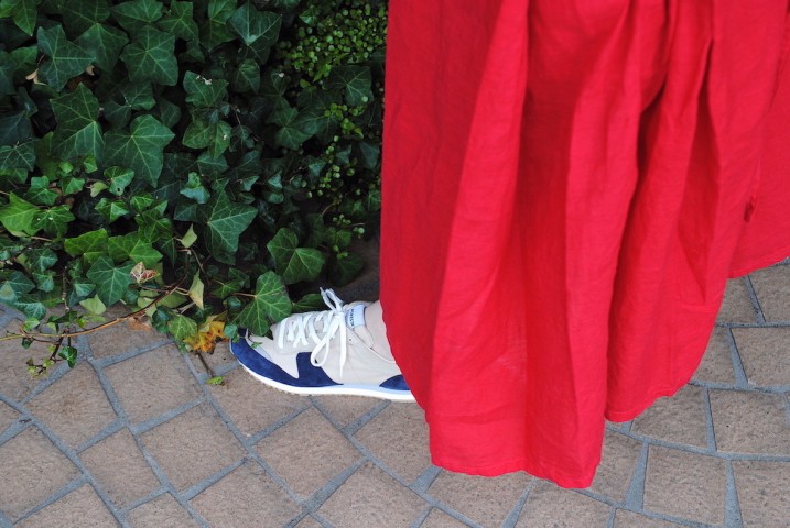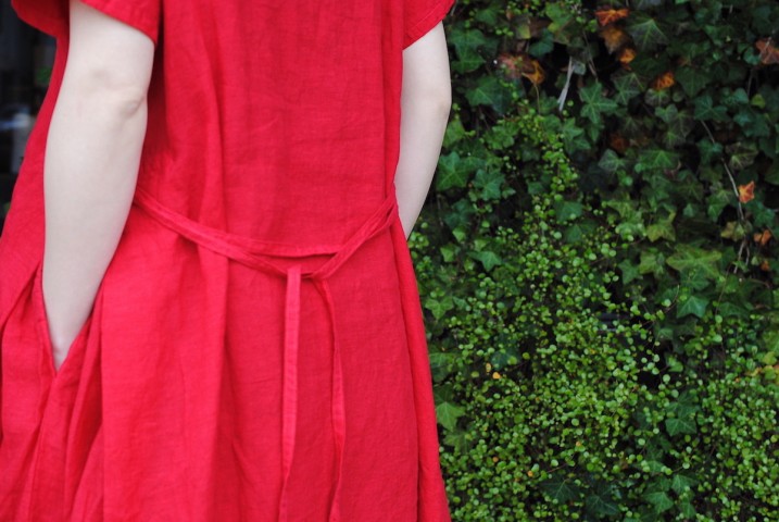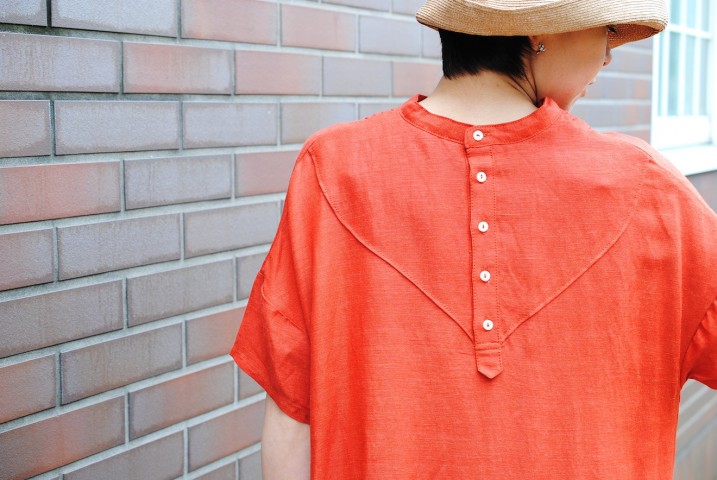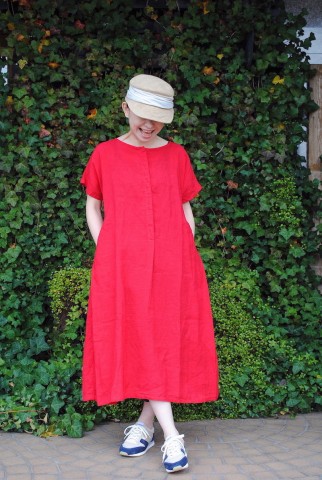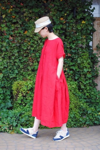 やや朱色がかった赤に染められたリネンは、見てる側へも楽しくさせてくれそうですね。