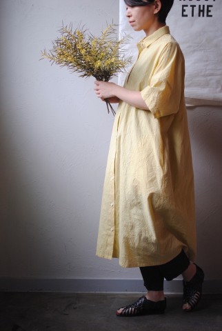 柔らかい黄色は着ていることを忘れてしまいそうなくらい、ストレスを感じさせない素材。