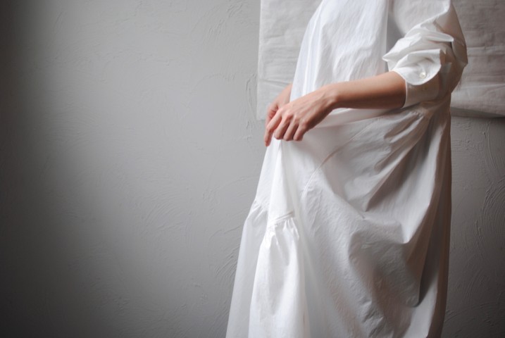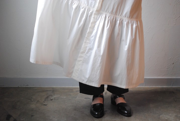 ギャザーが入りすっきりとしたシルエットは女性的で上品な佇まいです。