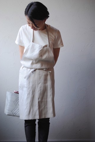 デイリーエプロンよりも着丈が長め、格好良い雰囲気。