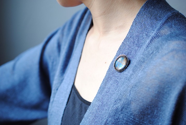 見る角度によって光り方の変わる神秘的なブローチです。