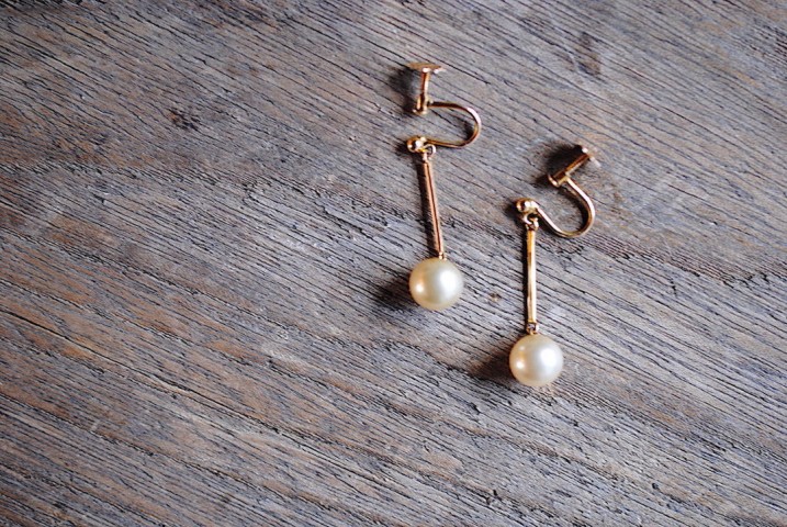 9カラットゴールドのパールイヤリング。