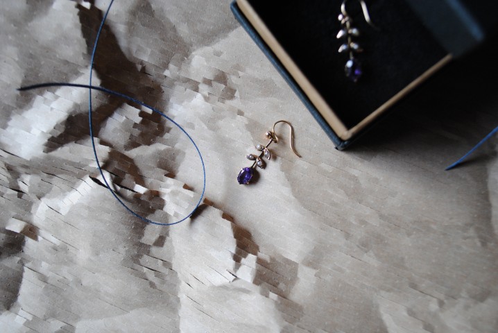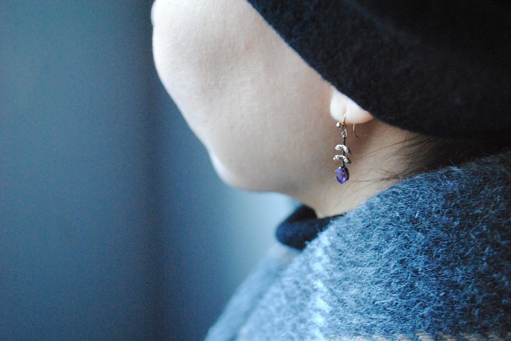 9K Gold Seed Pearl Amethyst Pierced Earring
