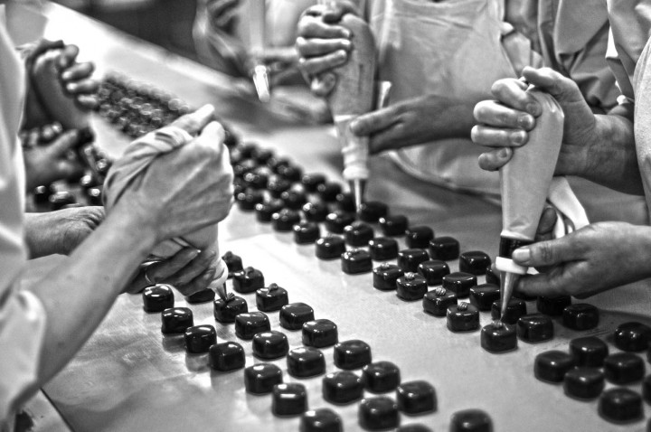 最終工程はショコラティエによって一つ一つ丁寧に手作業で仕上げられます。