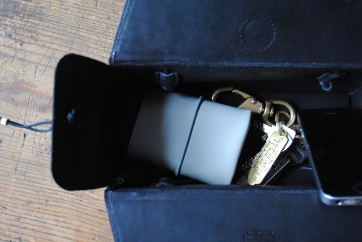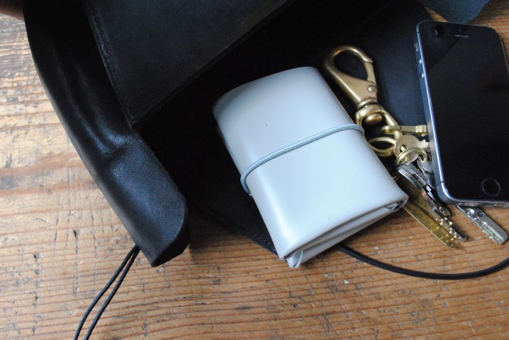 長方形は小さな財布と鍵と携帯。