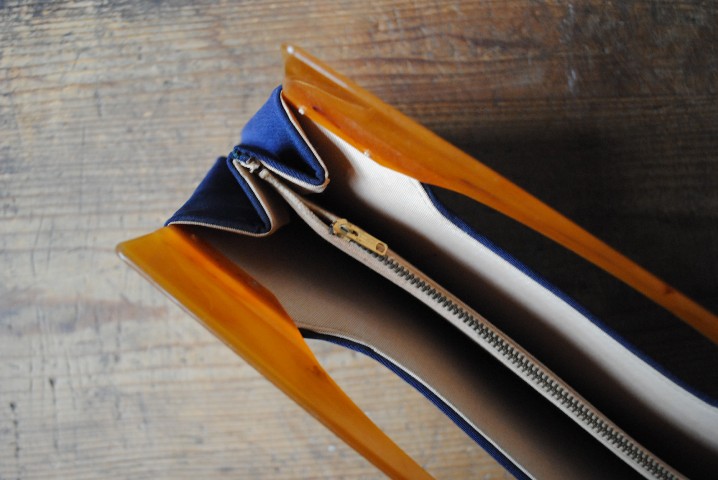 ベッコウ模倣のハンドルと生地ベースのコラボ。
